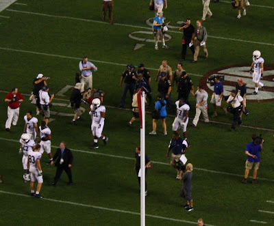 The huddle in the middle of the field